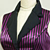バストパット付きで肌に直接着用するベスト風オーバーブラウスとして製作いたしました。衿は黒のサテン地、ボディーはストライプのサテン生地でクールでも可愛いデザインです。スカートの太めのリボンも細部にこだわりました。セミマーメイドならではのデザインです。色違い、サイズ違い製作いたします。ベストブラウスのサイズ展開はS,M,L,LLの4タイプ有ります。